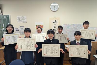 また、多くの作品を応募した学校に対して、今年度も主催者より感謝状もいただきました。これも本校の伝統の一つとなっています。