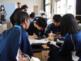 11月11日(月)他校のALTの先生が英語の授業参観に来られました。3年生はH先生によるディベートの授業を行いました。本日のディベートテーマは「Cram schools should be banned(塾は禁止すべきである)」です。生徒たちは、「賛成」「反対」に分かれて「学習習慣をつけるためには必要」「全員が通える訳ではないから平等な教育とは言えない」などを英語で主張していました。参観していた他校のALTの先生は「生徒があきらめずに話そうとする姿勢が素晴らしい」と驚いていました。生徒たちはこのように始めから話せたわけではありません。「難しい」と言いながらも、学習した表現を駆使して、何とか伝えようと努力してきた結果です。