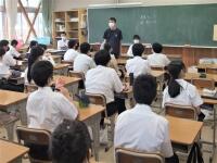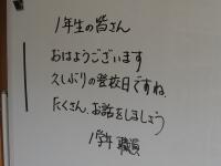 〇9月6日(月) 昇降口のホワイトボードには、久しぶりに登校する生徒のみなさんを迎える言葉。朝SHRでの、担任の先生とのちょっとしたやりとり。生徒のみなさんもどことなくうれしそうで安心しました。A先生「みなさんがいない間に、学校のある場所が変わりました。わかりますか?水道が自動水栓になりました!」生徒「えー⁉」SHRが終わると、流しやトイレに行って自動水栓の蛇口に手をかざしている姿、かわいいもんですね。生徒のために、と環境を整えてくださっている事務の先生方や保健室の先生方に感謝ですね。 2時間目と3時間目は、高校の生徒会立会演説会・投票を行いました。このご時世、選挙も分散開催です。