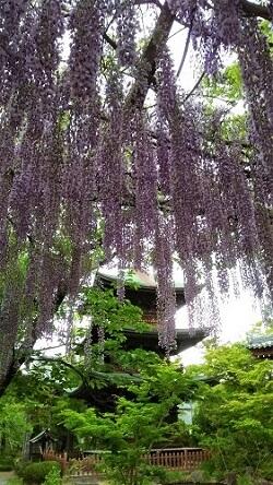 (1年生)上記の藤棚と国分寺三重塔の写真は、私は下の写真の方がいいと感じました。何故かというと、まるで藤の雨が降っているように感じられて、とても幻想的だからです。