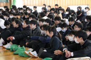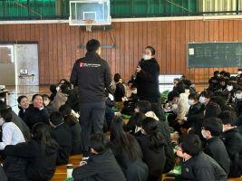 11月20日(水)2年生が福祉体験学習を行っている間、1年生、3年生を対象に人権講演会を行いました。講師の猪又さん、井出さんより「人権というのは自分らしく幸せに生きること」「そのためには色々な特徴のある人が周りに当たり前にいるということを認識することが重要」「色々な人と関わることで、自分自身がどのような特徴があるかが分かる」「何でも自分でやろうとすることが自立ではない。『助けて』『手伝って』と言えるようになろう」と自分らしく生きるために大切なメッセージをたくさんいただきました。