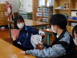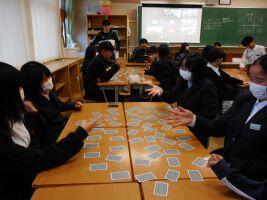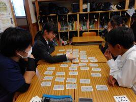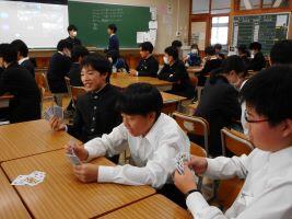 11月6日(水)鳩祭実行委員会による企画「全校交流会」がありました。学年やクラスが混ざってできたグループで、トランプを使ったカードゲームをして、交流を深めました。生徒は、始めの自己紹介の際には少し緊張していた様子もありましたが、ゲームが始まると緊張もほぐれ、「神経衰弱」の際には「そこだよ、そこ・・・」とお互い笑顔が見られました。委員会で賞状や景品も用意されており、午後の楽しいひとときを全校で過ごせました。