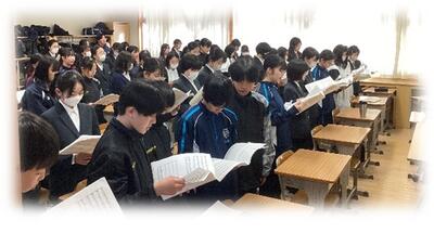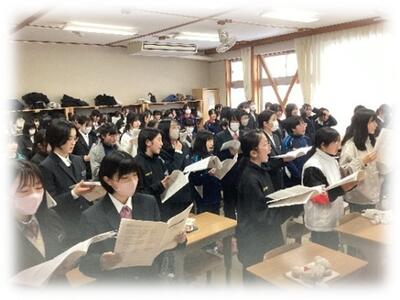2月20日(金)に行われる中学校行事「総合文化発表会」に向けて、全校合唱の練習が行われています。