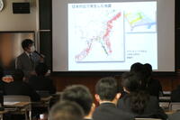日本列島における地震発生のしくみ、長野県内における地震の歴史について、そして減災についてスライドを見ながら話を聞きました。