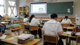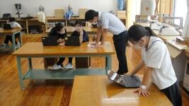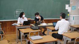 〇8月26日(木) 朝SHRが始まる前に、技術室と講義室をのぞきました。技術室では自主学習やキュビナに取り組んでいる1年生。聞くと、夏休みにキュビナをうまく使えなかった生徒への支援のようでした。講義室では3年生が修学旅行の係会を行っていました。それぞれの係の運営を計画していました。