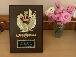 放課後、テニス班の女子のKさんとSさんが全国大会の報告もかねて、大きな盾をもってきてくれました。出場した10名だけでなく、男子も含めてテニス全員でつかんだこの栄誉。よく頑張りました。大事に飾らせて頂きます。