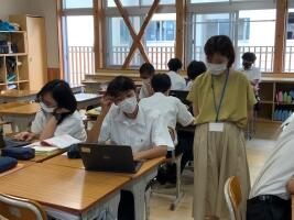 〇8月27日(土) 第2回授業公開を行いました。 参加された方からの感想アンケートに次のような感想がありました。「一人一人が自分の考えをグループ内で意見交換し、形にして最後は発表するという授業内容は本当にいいなと思いました。(プレゼンができる力を身に付けるのは社会に出てとても役に立つことなので)学校に来れない生徒もオンラインで授業に参加できるところも進んでいてよいと思いました。」本校が大切にしている部分が、参加された皆さんに少しでも伝わったのであれば、コロナ禍でしたが実施して本当によかったと思います。