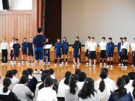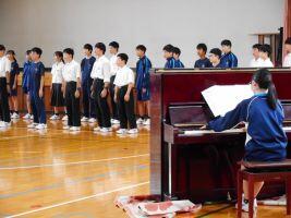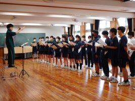 6月26日(月)4時間目にプレ音楽会を行いました。先週の金曜日に、音楽の教科担任、高校のI先生に全クラスご指導いただき、さらによい合唱になるためのコツを教えていただきました。発声の仕方や、並び方、強弱、リズムやテンポなどについてアドバイスをいただき、修正した歌声を披露しました。どのクラスも、とてもきれいな歌声で、もう一曲聞きたい気持ちでした。あと5日、さらに磨きをかけます。鳩祭の音楽会を楽しみにしていてください。