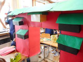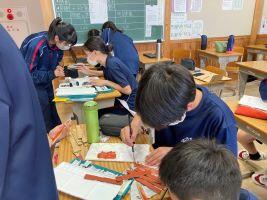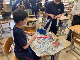 6月22日(木) 今日から鳩祭の準備期間です。鳩祭までの6日間、午後の2時間を使ってクラス合唱や立体アート、クラス展などの準備をします。各クラスをのぞいてみると、段ボールや紙粘土を使って、「ここは、こんな風に貼ったらどう?」「こうすればもっとよくなるよ」とアイディアを出し合いながら、協力して展示物を作っていました。合唱も、日に日に響きが美しくなっています。音楽会、楽しみです。