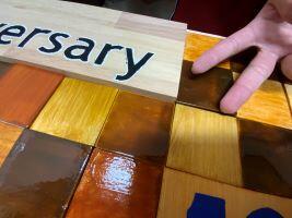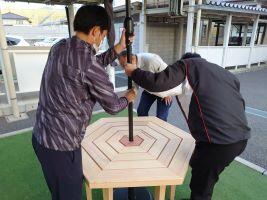 〇10月25日(火)  10周年記念式典まであと10日となりました。記念品のウッドテーブルが納品され、中庭の人工芝の所に、パラソルと合わせて設置されました。制作してくださった春原木材様は傷がつかないように細心の注意をはらって運んでくださいました。そして、一人一人の気持ちのこもった全校制作の時計を昇降口に設置していただきました。本日はオンライン授業・探究学習日のため、お披露目は27日(木)にする予定です。記念式典に向けて、”形”として残すものの準備は整いました。あとは、形には残らないけれど、記憶に残る生徒大討論会を、そして心に残る記念合唱をつくりあげましょう。