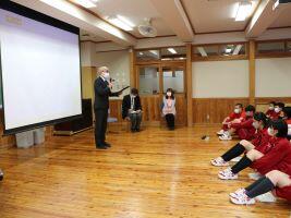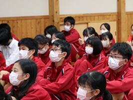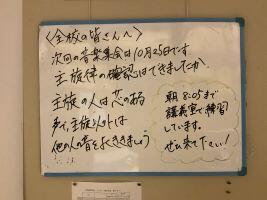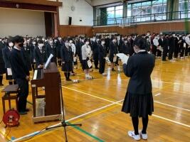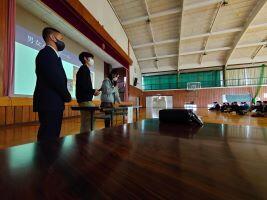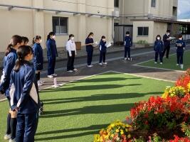 〇10月31日(月)  応援委員会による新人大会の壮行会、今回は卓球班と、体操に参加するYさんへの激励しました。個人で出場するYさん、夏の大会でも手の指先から足のつま先まで美しい演技をみせてくれました。新人大会でも日々練習を重ねた成果を発揮して欲しいと願っています。卓球班のみなさんは、なんと大会が11月5日。記念式典と重なってしまいました。私たちとすれば、記念式典も卓球班の皆さんの分まで頑張りたいと思っています。卓球班のみなさんは、当日までは記念式典に向けての練習も頑張ってもらいますが、大会当日は、記念式典のことは忘れて、試合に全集中し県大会を目指して頑張ってください。応援しています。