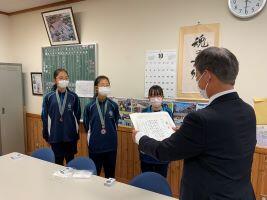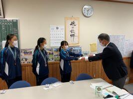 〇10月11日(火 ) 北信越出場を決めたテニス班男子団体戦、女子団体戦の表彰を行いました。次の大会へ進めることは大変素晴らしいことです。その中でさらに納得のいくゲームができるように、11月3日の北信越大会まで練習を積み上げてほしいと願っています。また、新人大会は相手も含めてかなり緊張します。勝ち上がればなおのこと。そう考えると、ひょっとしたら敵は相手ではなく、敵は自分自身かもしれません。どんな状況下でもベストパフォーマンスができるハートの強さも忘れずに。