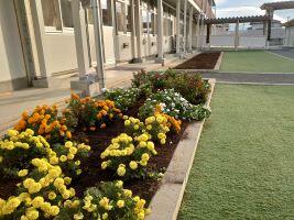 〇10月24日(月)  記念式典が近付いてきました。朝や放課後に聞こえてくる「君のこと」も日増しに力が入ってきています。それから、職員室前の花壇も、きれいに整備されました。まだまだきれいに咲いている花を大事に植え替えてくれて、さぞ、大変だったろうなと思います。「主旋律の人は”芯”のある声で」と、合唱プロジェクトチームからの連絡ボードに書かれています。主旋律と副旋律。どちらも大切。それはきっと歌だけでなく、普段の生活も一緒。花壇をきれいにすることも、学校生活の大切な副旋律。全員で副旋律を大切にして、記念式典に向かおう!