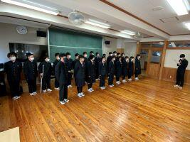 【学校では…(M先生より報告を頂きました)】最上級生の先輩がいない間、1,2学年は何をすべきか考え生活しています。まずは、10周年記念合唱の練習です。指揮者・伴奏者の3年生はいないけれど、CD音源を使って練習しました。本番まで取り組んだ分だけ本番を楽しみに迎えられると思います。有志で集まって練習している朝の時間は、日に日に人数が増えています。朝学習に取り組む生徒、新人戦の練習に取り組む生徒、そして合唱練習をする生徒。朝からそれぞれがそれぞれの場所で頑張っています。また、清掃では、3年生の分担場所を1,2年生で手分けして清掃しました。3年生がどう清掃に取り組んでいたかを考えたり、3年生からバトンタッチされる時のことを考えたりしながら清掃してみました。3年生がいない学校は寂しいけれど、3年生が安心して帰ってこれるように1,2年生が学校を守ります!