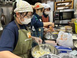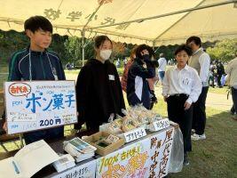 11月5日(火)文化の日の3日、森将軍塚まつりに1年生の「特産物」と「古代米」の探究グループが出店をしました。子どもたちは、前日に千曲市にある和かふぇよろずやさんのご協力のもと、杏を使った「杏のガトーバスク」350個を作りました。また、上田市の十割そば処福田さんにご協力いただき、「対馬」と「アクネモチ」の2種類の古代米を使ったポン菓子243袋を用意し、販売をしました。袋のシールも生徒がつくり、1つ1つ丁寧に貼っていきました。「こんなに売れるかな?」と心配していた生徒たちでしたが、「杏のガトーバスク」も「ポン菓子」も13時頃には完売し、皆大喜びでした。