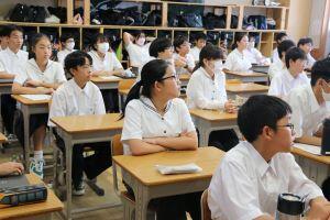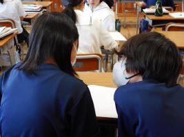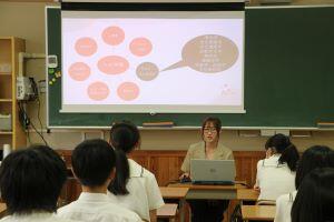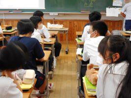 8月20日(火)夏休みが終わり、授業が再開しました。2年生の英語の授業では、市の派遣交流事業でアメリカコロラド州に行き、1週間ホームステイをしたAさんが、写真を見せながら異文化に触れた体験を発表しました。Aさんは「目にするものすべてが新鮮だった。」「食べ物は全部が大きく、Sサイズのアイスが手のひらが隠れるくらい大きかった」「英語で上手く伝わらなかった所はジェスチャーなどで伝え、温かく迎えてもらった」と感激した思いを共有してくれました。また、1年生の教室では、久々に会ったクラスメートと、グループで協力しながらクイズに答えたり楽しく過ごす様子がありました。9月、10月には定期考査や宿泊行事があります。皆で切磋琢磨し、協力し充実の「秋」を迎えたいです。