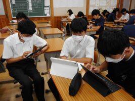 8月27日(火)1年生の英語の授業の様子を紹介します。本校の英語の授業は2クラスを3講座に分け、少人数で学習をしています。その中の1講座では、本日、音読アプリを活用した授業を行っていました。ゲーム感覚もある音読アプリで、生徒は夢中になりながら、何度も音読を進めていました。そして、自分のペースで音読をくり返していくうちに次第に流暢な英語に変わっていきました。本校職員はICTを効果的に活用してどのような授業が行えるか日々考えています。今回のように新しいアプリケーションも積極的に活用しながら、生徒の力が伸びていくよう、これからも丁寧に教材研究を行っていきます。
