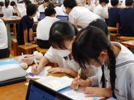 8月29日(木)昨日、高校生グループが行っている「救命率を高めるために」の探究活動の一貫として、中高生を対象とした「救命救急講習会」がありました。附属中学校・高校から16名の生徒が参加し、更埴消防署の方を講師にお迎えし、約1時間の講習を受けました。参加した生徒は「すごくためになった。体育の授業でも学習したことがあるけれど、声のかけ方とか、肩の叩き方とかひとつひとつに意味があるのだと知った。体を動かしてはいけないと思っていたけれど、必ずしもそうではないことも知った。」と感想を述べてくれました。また、本日は全校で防災訓練がありました。いざという時体が動くようにするためには、やはり日頃の訓練です。想定外の状況下でも最善を尽くせるよう備えたいです。