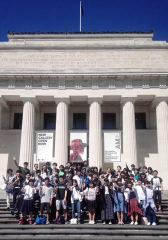 海外研修を行っている3年生が、ホームステイの合間を縫って、週末にオークランド観光をしました。ここはオークランド博物館です。47名全員元気です。