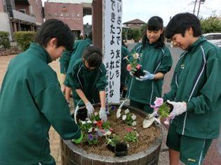 14日(木)鳩祭を控えて、環境整備作業として、各クラスの10人が屋代高校前駅のロータリーに花を植えました。地域の方や駅利用者の方に楽しんでもらえるとうれしいです。鳩祭直前には,駅周辺や学校周辺の整備作業も行う予定です。