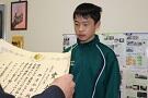 11月11日(月)、第25回長野県現代書藝展学生部に入賞した3人の書道班員の表彰が行われました。