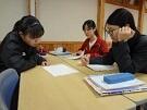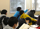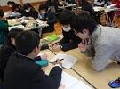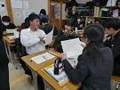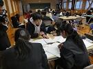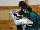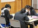 高校生と中学生が、頭を寄せ合い、共に学ぶ姿が印象的です。
