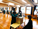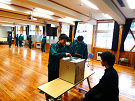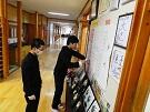 生徒会選挙の翌日、朝早くから、結果の告示を掲示していた選挙管理委員長と副委員長。責任感を持った活動でした。