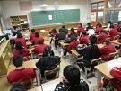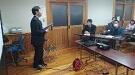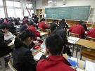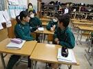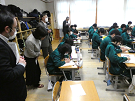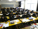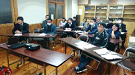 年末の全校集会(放送)での、学校長の話を聞く生徒の様子です。