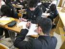 ↓高校1年生の授業。友と話しながら考えていく姿。