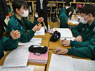 ↓自分の考えを語り合う、聞き合う生徒たち。1時間考え、迷い、深めていました。