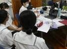 ↑動詞活用表のどこを見ればいいか教えている3年生