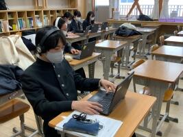 〇12月18日(土) オンライン語学研修5がありました。あいにく雪により、学校へくることができずに、家庭から接続して学習する人もいました。また、雪のために接続がうまくいかなかった人もいました。今回でちょうど半分終了しましたが、これからの天候も気にしながら対策をたてる必要がありそうです。今回は現地の大学生がグループに複数入って会話を楽しみました。かなり早口に聞こえますが、聞き取れている生徒も増えてきているようですね。リアクションを積極的にとってコミュニケーション能力を磨いてくださいね。