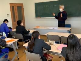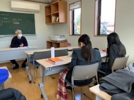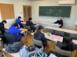 また、午後は同窓会館での立志舘(英語特別講座)の様子を見に行きました。6名の生徒が学習していました。赤地先生の説明はとても的確でわかりやすく、30分程ですが私も一緒に授業を受けさせて頂きました。久しぶりに学ぶ楽しさに触れることができました。生徒の皆さんの中には、午前中のオンライン語学研修から引き続きの人もいました。よく頑張ってますね。きっとよい成果が出ますよ!