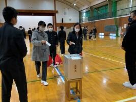 〇12月22日(水) 生徒会の立会演説会と選挙が行われました。最初から最後まで厳粛な雰囲気の中で行うことができました。 全校の前でお話をする機会を頂きましたので、次のような話をしました。3年生には、スローガンにもある「協働」の姿をこれまで姿で示し、引っ張ってくれたこと。1、2年生には、引き継ぐ自覚を感じることができる姿がいろいろなところで見えるようになってきたこと。そして、「選ぶ」ということは、「痛みを伴う」ということ。この選挙を通じて、痛みをきちんと受け取ることができる逞しさと、仲間の痛みに寄り添うことができる他者意識を身に付け、ひとまわり成長してほしいと願っています。選挙管理委員のみなさん、大役をありがとうございました。