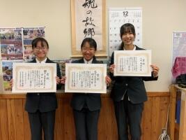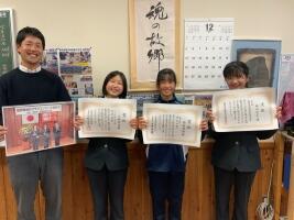 〇12月23日(水) 長野県統計グラフコンクールで受賞した3名が賞状をもって来てくれました。NBS賞KYさん「交通事故のない未来は実現可能か」 、ABN賞URさん「反抗期の今だからこそ親孝行を!」、県統計教育研究協議会長賞TMさん「乗って残そう別所線の未来」です。16日に正式の場所で表彰されていましたが、学校でも代読させて頂きました。児玉先生からは、自分の力でデータを取ってまとめているところが素晴らしかったとお聞きしました。自分の力で調査して、結果を分析して、そして考察・解釈していく・・・この一連の学びの流れは、どんなところでも使える大切な力です。今後も益々期待しています。