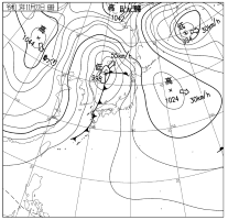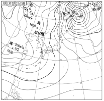 1020hPaより気圧が高いところを青く塗って見てみよう!→これ、気象庁のHPですが、過去の天気図すべてあります。天気図の特徴と実際の天気の特徴をつかめば、テレビで天気図を見た瞬間に、天気が予想できるようになります。そして、実はぬり絵が楽しい!はまります。よければどうぞ。