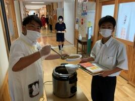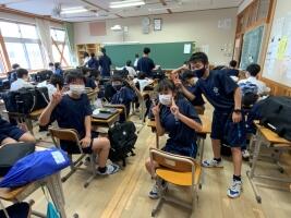 〇7月21日(木)  夏休み前最後のカレーの日。斡旋弁当を注文している人や、カレーの日のみ注文している人が毎月少しずつ増えてきて、今では一大イベントになってきました。「今日は超大盛りでお願いします」「今日はちょっと少なめで...」「先生、ジャガイモ多めでお願い!」等、感染対策をとりながら、ちょっとしたやり取りが妙に楽しみな日になりました。いつも少し多めに準備してくださるお弁当屋さんに感謝です。大勢おかわりしてくれました! 「ちょっとしたやり取りを楽しむ」と言えば、帰りのSHRのときに1年B組をのぞくと、各自荷物の準備もほぼ終わり「さようなら」の挨拶を待っているところでした。荷物準備の終わった皆さんが私に気づくと、写真を撮ってくれといわんばかりのピース!思わず私もノッてしまい、喜んで写真を撮ってしまいました!医療警報が出てこの先不透明ですが、仲間と笑顔で過ごす日々は大切にしたいなと、ちょっとしたやり取りから感じました!