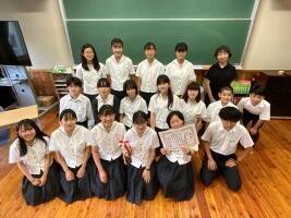 〇7月27日(水) 北信越大会に進むテニス班、東信ブロック大会に出場する合唱班の壮行会を行いました。今年の応援委員会の皆さんは、仲間の頑張りを本当に一つ一つ丁寧に扱い、新しい壮行会をいくつも計画してくれました。生徒会長のOさんも、これまで応援して頂いたことへの感謝を忘れることなく口にしています。それだけ、毎回心に残る企画になっているのでしょうね。声を張り上げる応援はできませんが、とても素敵な壮行会になりました。