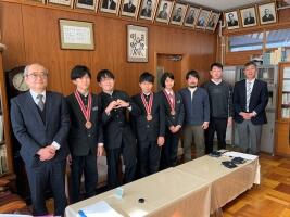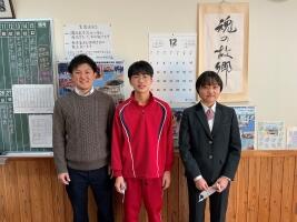 〇12月7日(水) 馬場校長先生に、科学の甲子園ジュニア全国3位の報告をしました。メダルがずっしりと重くて、3位で銅メダルをもらうという重さが伝わってきました。おめでとうございます。 二年生のTMさん、KYさんは、本日上田税務署で「一日署長」を務めました。税に関する作文にとてもよい評価を頂いたためです。頑張りましたね。科学班も税の作文も、自ら積極的に挑戦した結果です。これからも、様々なことに挑戦してほしいなと思ってします。挑戦しなければ、何も始まらない。附中生のさらなる活躍を期待しています。