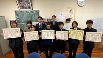 〇12月12日(月) 人権作文コンテストの表彰をしていただきました。県優秀賞にKYさん、優良賞にIAyさん、TAさん、INさん、奨励賞に、MHさん、SDさん、IAnさん、HHさんが選ばれまました。皆さんの作文をじっくり読みたいと思っています。おめでとうございます。放課後は千曲市役所で科学の甲子園ジュニア全国3位の報告をしました。いろいろな場所で皆さんが頑張っているんだと思うと、元気が出てきますね!