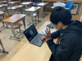 〇12月14日(水) 本日はオンライン授業・探究学習日。今日は急に冷え込んでいたので、「雪が降ったところありますか。」という先生の質問も、本校ならではですね。今日の授業では、カメラをオンにして各家庭でサイコロを振り続けた数学の確率の授業がありました。皆さんの中には、休み時間や午後の探究活動でもサイコロを振り続けた人もいたようで、のめり込んで授業に向かっている様子がよくわかります。先生方も一方通行にならないように、よく教材研究していますね。学びたい=力を付けたいのイコールが、授業を興味深いものにしています。