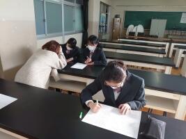 〇12月19日(月) 朝の学活前、今週は安全委員会による通学時の携帯電話の使い方についてグループごと意見を出す時間を取りました。生徒会が中心となり自分たちの生活を見返す大切な企画です。大勢の生徒が遠方から通学している本校。安全に通学できるようにするという視点と、公共の交通機関を利用するという視点の両方が必要ですね。今週の話し合い、どんな結論が成されるのか、とても楽しみです!安全委員会のみなさん、よろしくお願いします。