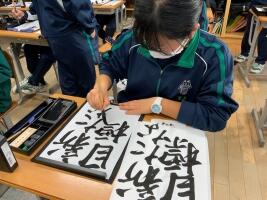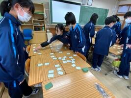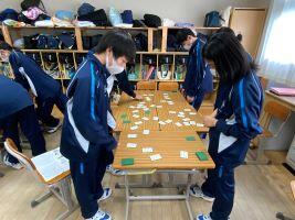 〇12月15日(木) 朝、3棟2階では3年生の朝学習が行われています。本日は英語の日。O先生とK先生が、個別に質問に答えながら、関係代名詞の復習をしていました。学習の時間を自分から生み出して取り組んでいるものは、絶対大きな力となって自分を助けてくれます。国語では、書き初めの練習や百人一首が行われていました。「ちはやぶる~」の「ち」が聞こえたか否かで、バババッと札をとる生徒の皆さん。有名なものだとはいえあまりの速さに驚きました。きっと覚えようと思って繰り返し勉強したのですね。習字もそうですが、身に付けようと何度も繰り返したことが、自分の力になる証。ポイントは、自分で繰り返せるかどうか、、、。