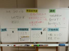 〇12月20日(火) いよいよ明日は生徒会の選挙だなと思いながら、廊下や階段の掲示物を眺めてみました。生徒会のホワイトボードも丁寧に連絡が書かれています。「相手に伝えるにはどうしたらよいか」という気持ちが、手書き(アナログ)には表れてきますよね。書き方ひとつで協力しようという気持ちが生まれます。それは教室の連絡黒板も同じ。明日の予定に、何をどうか書けばクラスのみんながやる気になるか、教科係の腕の見せ所。習字セット絶対忘れないようにしようって私は思いました。「字」ひとつに込めたメッセージ、やっぱり伝わりますよね!