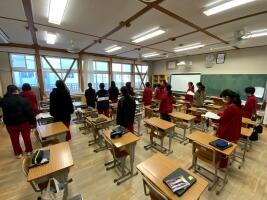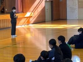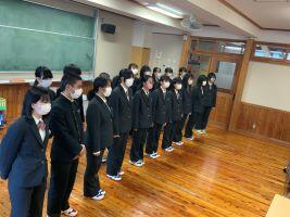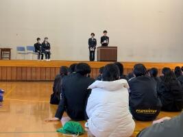 〇12月26日(月) 令和4年の最終日。本校は二学期制のため終業式はありません。それでも12月の最終日は少し気ぜわしい感じがしますね。今日は、1月に大会のあるスキーに参加するSYさんとUTさん、合唱班、吹奏楽班の壮行会を応援委員が開いてくれました。スキーの二人には、昨年度を上回る記録を、合唱班と吹奏楽班には、みなさんならではの音を作ってほしいというお話をしました。練習の成果、きっとでますよ。