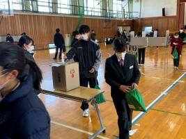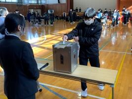 4校時は、立会演説会と投票をおこないました。緊張感のあるとてもよい空気を選挙管理委員会の皆さんが作ってくれました。選挙管理委員の仕事をする姿、気持ちを堂々と話し切った、KSさん、IMさん、MKさん、FSさんの候補者&推薦責任者のみなさんの姿は、全校生徒の目にもしっかりと届いたのではないでしょうか。フロアで聴いている全校生徒の皆さんの横顔が印象的でした。