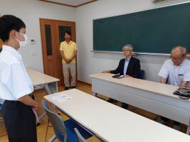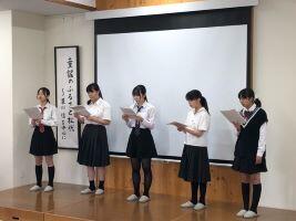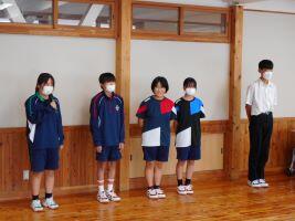 8月31日(木)残暑厳しい毎日ですが、いよいよ新人戦のシーズンが始まりました。先陣を切るのは水泳班と陸上です。各班の代表MさんとKさんがそれぞれ「全員が賞状を持ってこられるよう頑張る」「170cm跳びたい」と決意を述べてくれました。暑い夏の間も頑張った、その努力が実りますように。全校で応援しています。