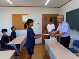 8月10日(木)北信越大会で、強豪校を破って全国大会を決めたテニス班女子団体の激励会を同窓会長の赤地様が行ってくださいました。