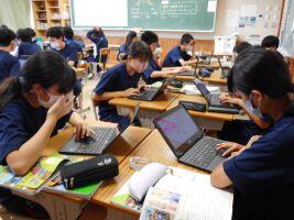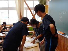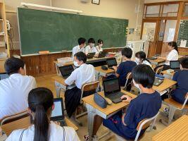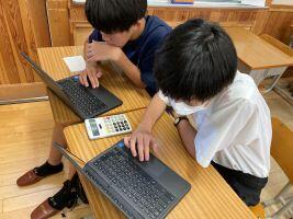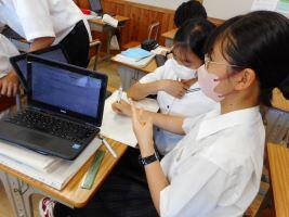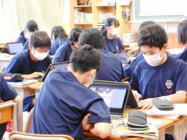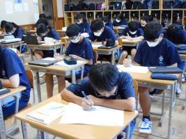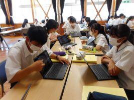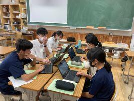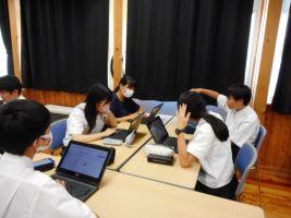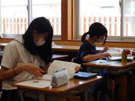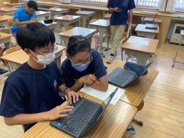 8月25日(金)自習の様子です。理科の時間が自習になり、復習のプリントをやりました。プリントが配られると、皆黙々と取り組み、分からないところは教科書やタブレットを使って問題を解いていきました。問題を解いていく中で、別の疑問が浮かぶことがあります。この日は、酸化銅Ⅰと酸化銅Ⅱの化学式の違いについて、考えている生徒たちがいました。インターネットを使って検索をしてもなかなか解決はしないようでした。急遽、高校の化学の先生に来ていただき、疑問を聞いてもらいました。「イオン」が関係しているようです。生徒たち、今度は「イオン」について調べ始めました。「イオンって何だ?」「ショッピングモールなら知っているけれど・・・」次から次へと疑問が浮かびます。新しいことを知ったり疑問が解けたりするって楽しいですね。