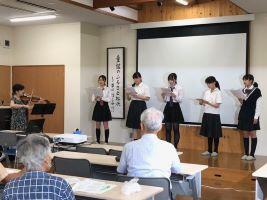 8月19日(土)屋代高校創立百周年記念事業のひとつとして、元篠ノ井東中学校長であり、郷土史研究家の栗林秀夫先生より、作曲家、草川信さんの生涯についてのお話をお聞きしました。草川信さんは「夕焼け小焼け」や「どこかで春が」「汽車ポッポ」など私たちが耳にしたことのある曲の作曲者ですが、屋代高校・附属中学校の校歌も草川信さんが、作曲してくださった曲です。戦時中、困難に直面しながらも、様々な人との出会いの中で、後世に残る曲を作り続けた草川さん。いつの世にも人との出会いやつながりが人生を豊かにしたりその後の生き方に影響を及ぼすことを改めて感じました。会の中で、合唱班有志のみなさんが草川さんの曲5曲を歌ってくれました。澄んだきれいな歌声に、心癒されました。